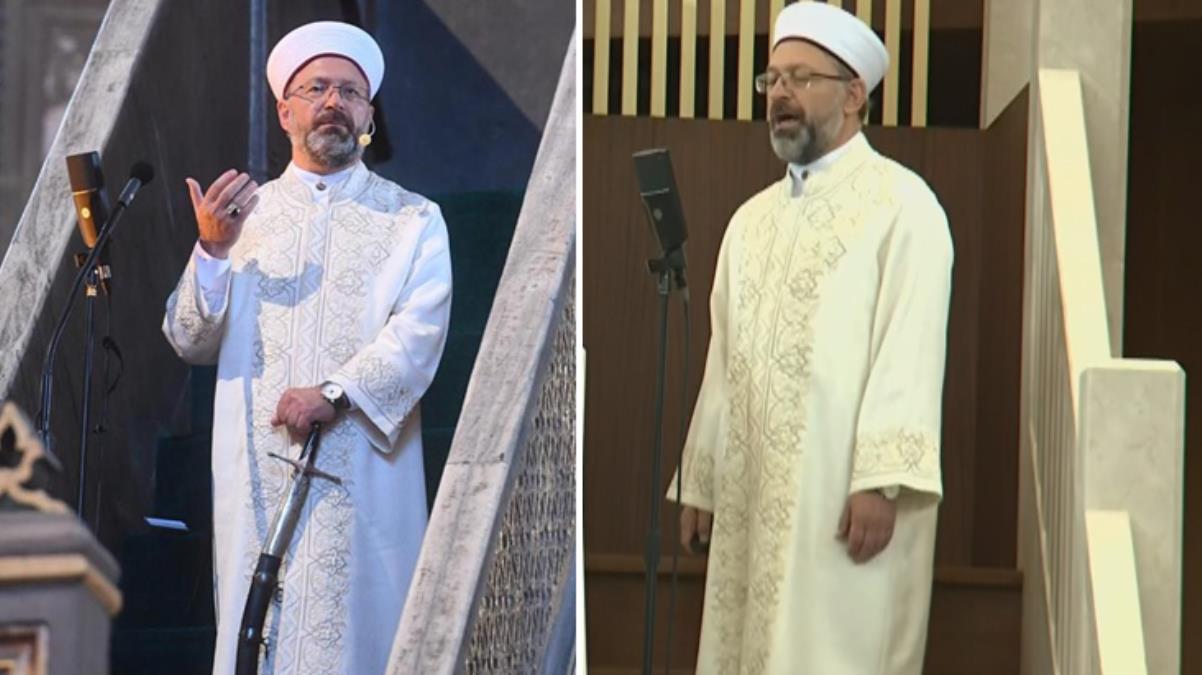 Diyanet İşleri Başkanı Ali Erbaş da hutbe okumak için minbere çıktı. Ayasofya-i Kebir Cami-i Şerifi açılışında Erbaş'ın hutbeyi okumak için minbere kılıçla çıkmasından sonra bugün de aynı geleneğin devam edip ettirilmeyeceği merak konusu olmuştu. Ancak Ali Erbaş, minbere kılıçla çıkmadı. Bunun sebebinin ise kılıçla hutbe okuma geleneğinin sadece fetih camilerinde yapılıyor olması ile açıklandı.